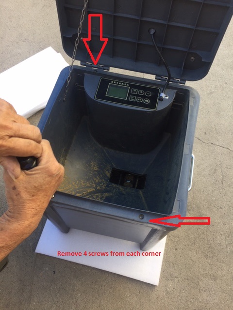 – remove all 4 screws, at each corner of the feeder