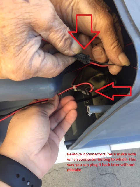 – disconnect the 2 quick connections, please make note of which connector below to which one, this way no mistake when you plug them back.