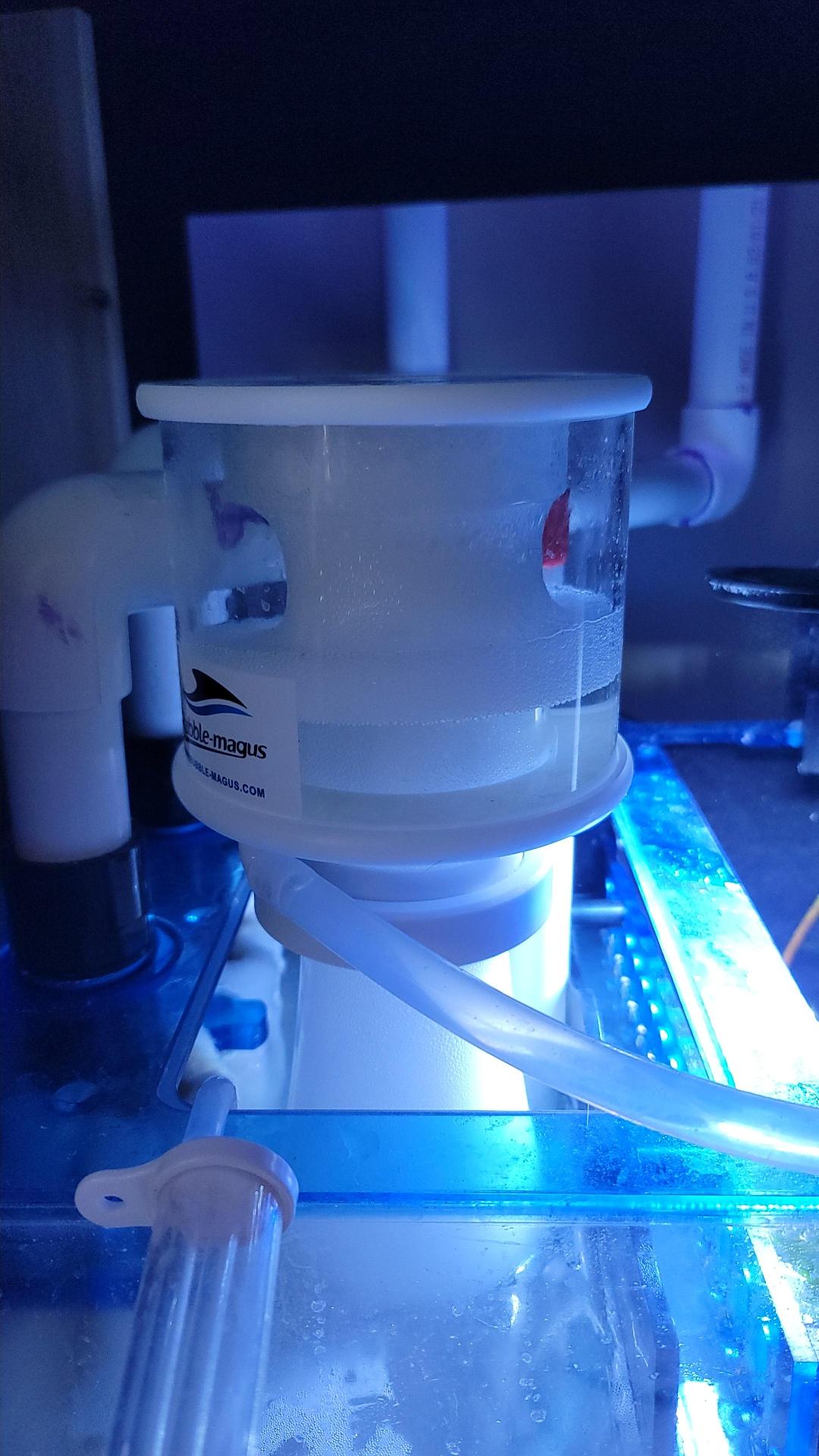 Can not get micro bubbles to stop exiting from the bottom of skimmer. Its in 8 inches of water and has been running for 3 weeks. I had to block off the air to slow the over flowing down