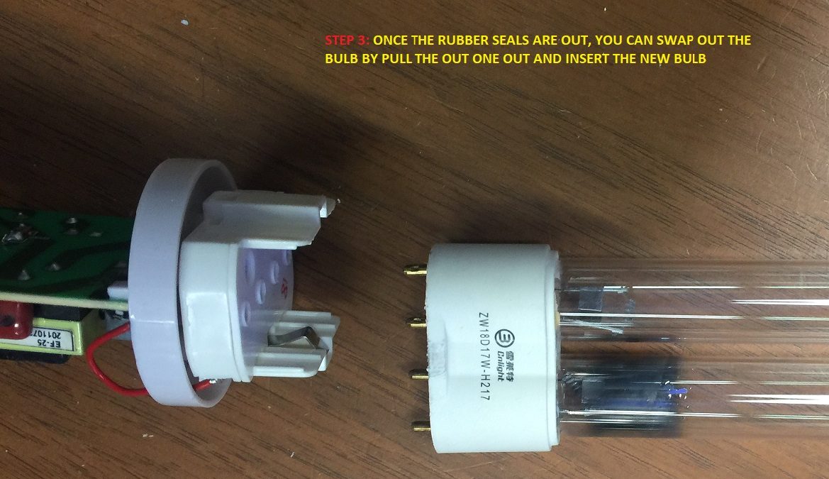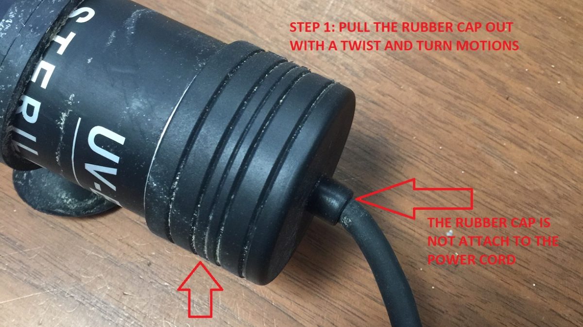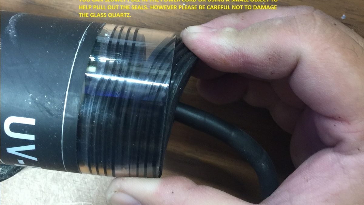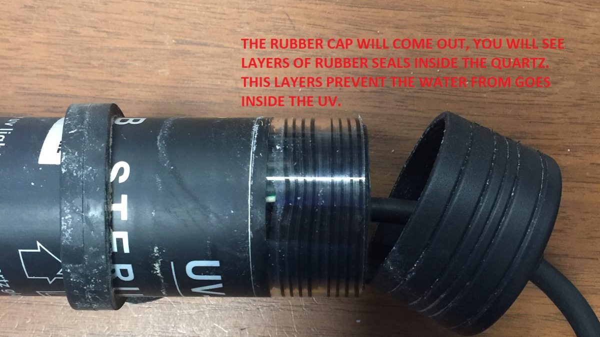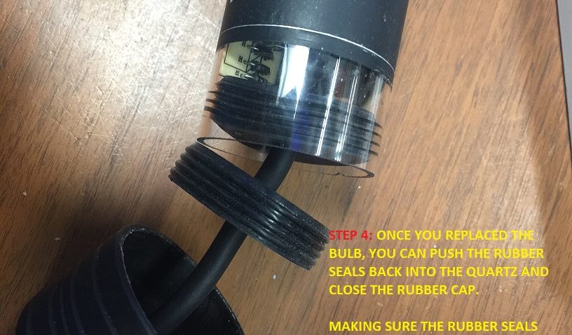 5 – push the rubber seals back into the glass quartz and slide the rubber cap back into the UV.