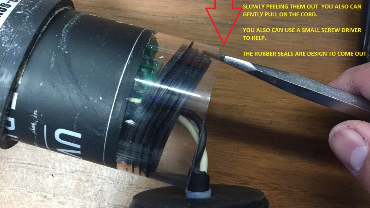 3- using protective gloves, you can slowly pull the power cord so part of the rubber seal will come out. Once its out, you can start pulling them out. You can use some small object to help with this process, however please be careful of breaking or damaging the glass or most important, hurting yourselves.